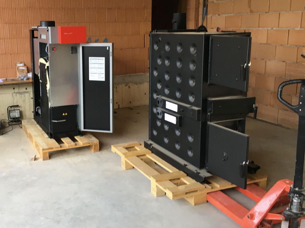 Stückholz- Pellets Kombi Kessel zur Beheizung von zwei Wohneinheiten (Alt- und Neubau).