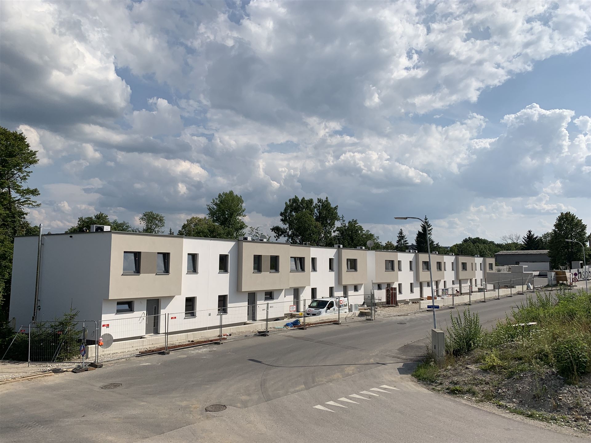 Luft Wasser Wärmepumpen je 5,5 kW zur Beheizung, Kühlung und Warmwasserbereitung von 10 Reihenhäusern mit Garten direkt an der Ybbs.